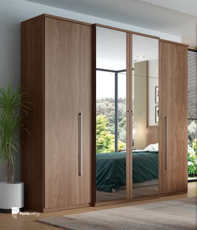 O Roupeiro Canada Glass oferece a praticidade de 4 portas, 2 gavetas e 10 tampos fixos. Aproveite o espaço reservado para organização de calçados, localizado logo abaixo das gavetas. O móvel dispõe ainda de 1 cabideiro e 3 maleiros embutidos. Adquira o seu e renove o ambiente!