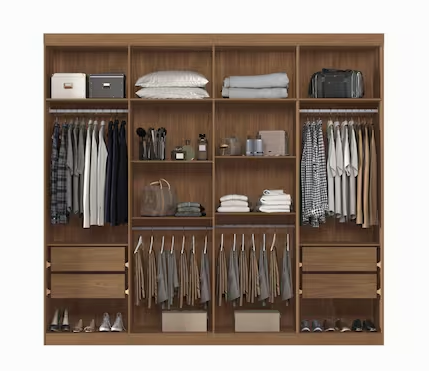 Projetado para oferecer praticidade no dia a dia, o modelo possui quatro gavetas espaçosas com corrediças telescópicas, que deslizam suavemente e facilitam o acesso aos itens guardados. Além disso, conta com dez prateleiras amplas, ideais para organizar roupas dobradas, caixas, sapatos e objetos decorativos, otimizando o espaço interno com muita eficiência.