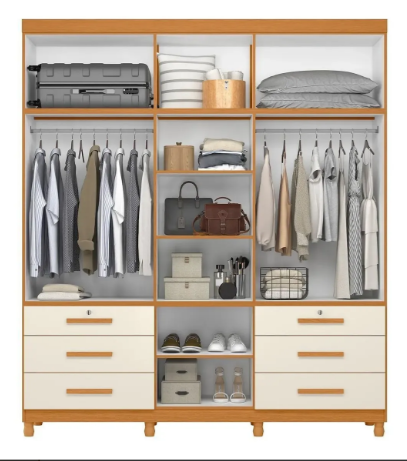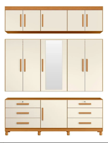 O guarda roupa Otto além de belíssimo é triplex, seus três módulos podem ser separados facilmente para o Transporte. Ele é ideal para quem busca praticidade e não abre mão de espaço e organização. Possui cabideiros em alumínio, puxadores em MDF revestidos, pés com regulagem e espelho incluso já colado na porta. As 6 gavetas laterais são com corrediças telescópicas proporcionando mais abertura e resistência das mesmas, 2 das gavetas são com chave.