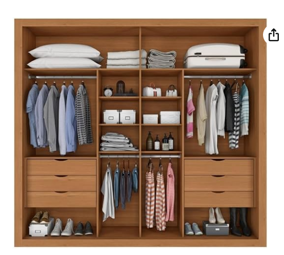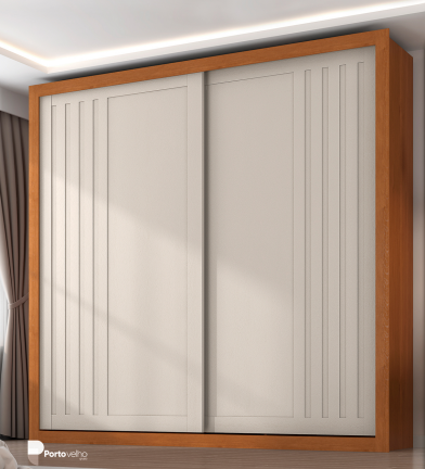 Guarda-roupa Versalles 2 Portas 6 Gavetas Cinamomo/Areia. O Guarda Roupa Versalles com 2 portas de correr ripadas e 6 gavetas contém design elegante, resistência, durabilidade e acabamento com revestimento interno e externo. Com várias divisões para armazenar roupas e objetos, ele também disponibiliza duas opções para montagem interna, proporcionando escolher a divisão ele/ela de acordo com sua necessidade. Guarda-Roupa Versalles reúne harmoniosamente beleza, qualidade e durabilidade.