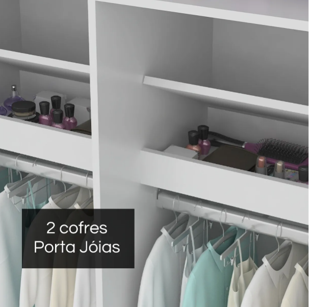 2 cofres internos, ideais para guardar acessórios e joias com segurança;