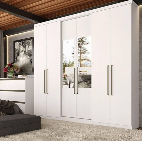 Transforme o seu quarto em um ambiente moderno, organizado e sofisticado com o Guarda Roupa Casal Tria Glass 6 Portas. Com design imponente e acabamento elegante, este roupeiro oferece toda a praticidade que você precisa para o dia a dia sem abrir mão da beleza. São 6 portas espaçosas, sendo parte delas com detalhe em espelho, que traz um toque contemporâneo e valoriza a decoração do ambiente. Internamente, o modelo conta com divisões inteligentes, cabideiros resistentes e amplas prateleiras, garantindo espaço de sobra para roupas, calçados e acessórios.