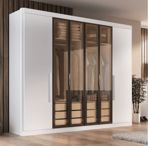 O Guarda-Roupa Valência é a escolha ideal para quem busca elegância, funcionalidade e amplo espaço interno. Perfeito para quartos de casal e solteiro, ele foi projetado para garantir durabilidade, praticidade e um design sofisticado. Seu design inovador e compacto conta com lados idênticos, facilitando a divisão de espaço e proporcionando uma organização impecável. Além disso, ele possui uma porta com vidro Reflecta, trazendo um toque moderno e sofisticado para a decoração do seu quarto.